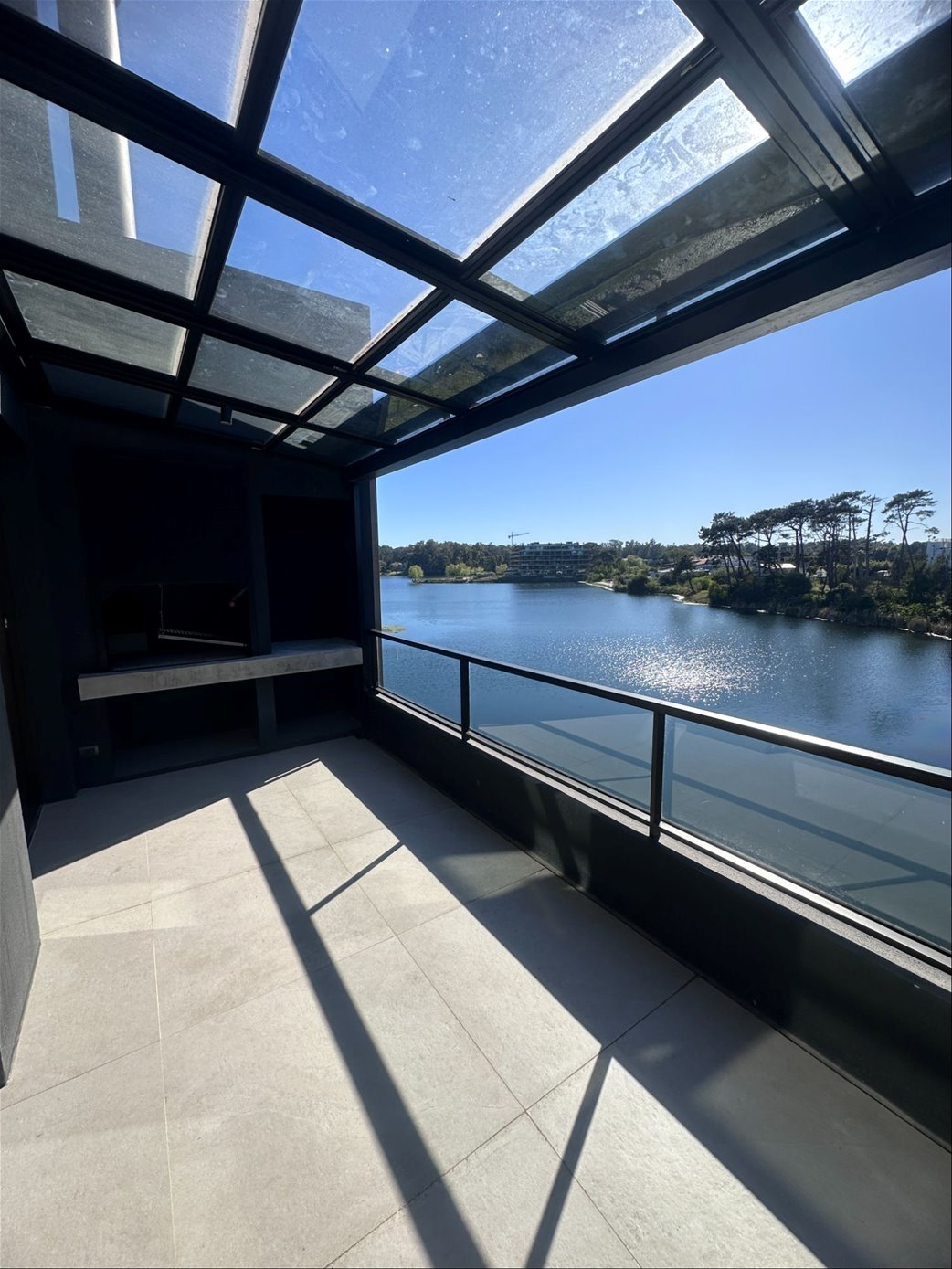 Una hermosa terraza con parrillero con vista al lago, al igual que los dormitorios.