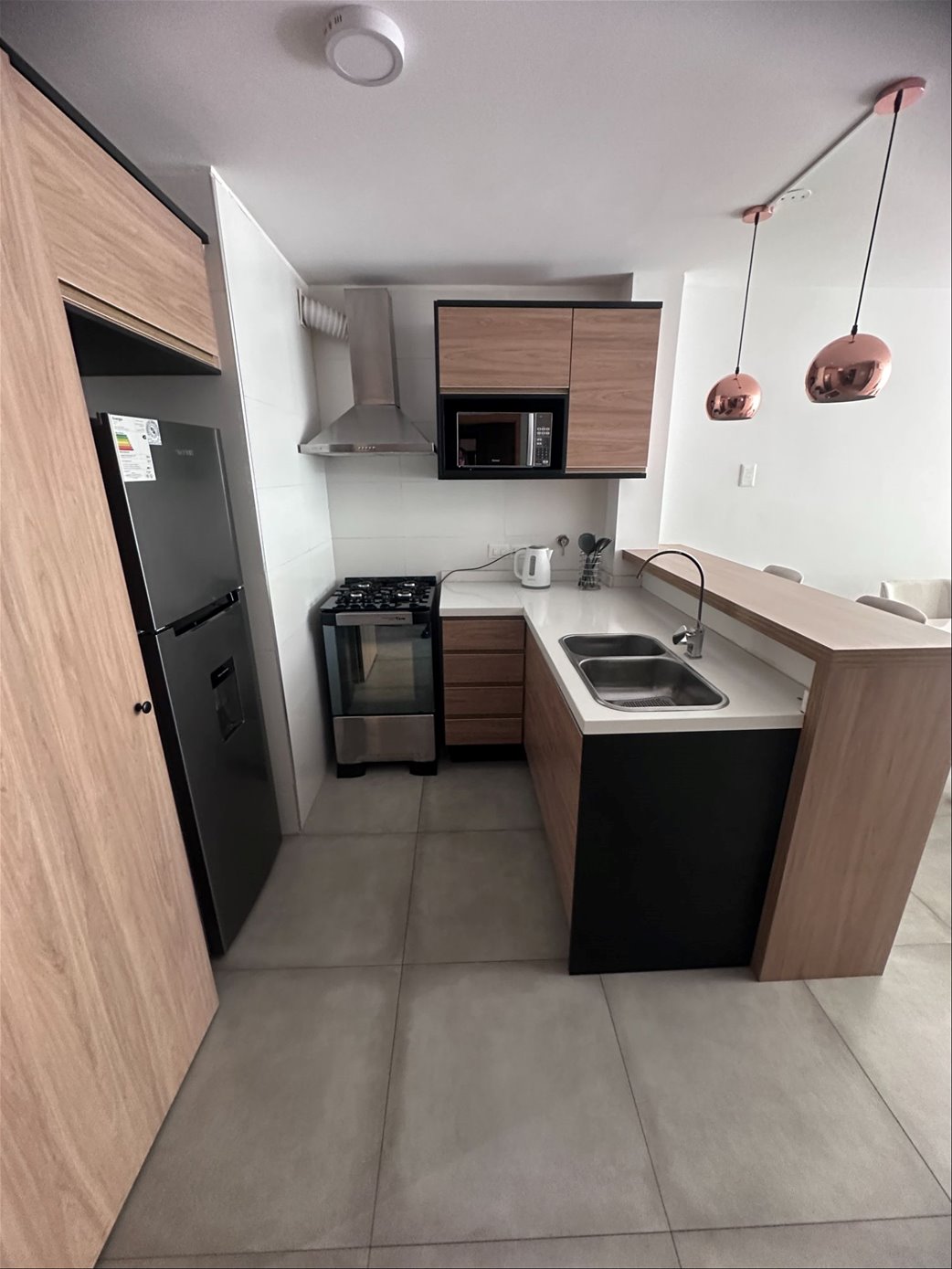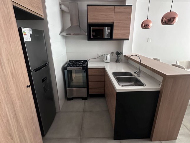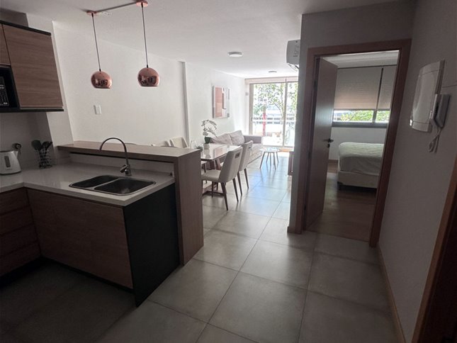 Cuenta con cocina integrada, completamente equipado listo para entrar! Muebles sobre y bajo mesada, muy buena capacidad en placares así como en la cocina. Un apartamento amplio, cómodo y decorado con buen gusto!!