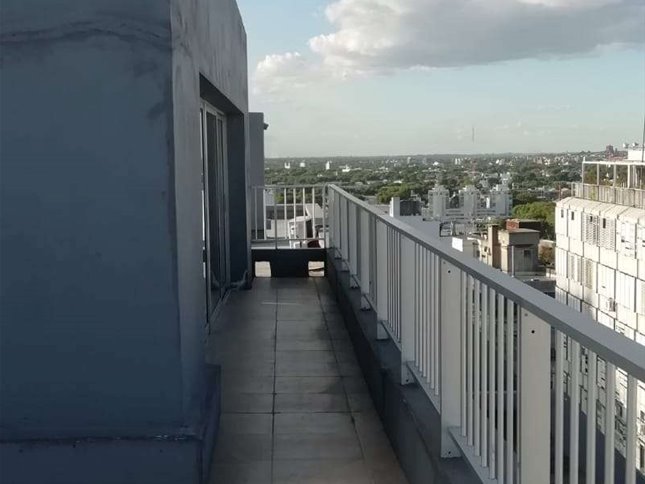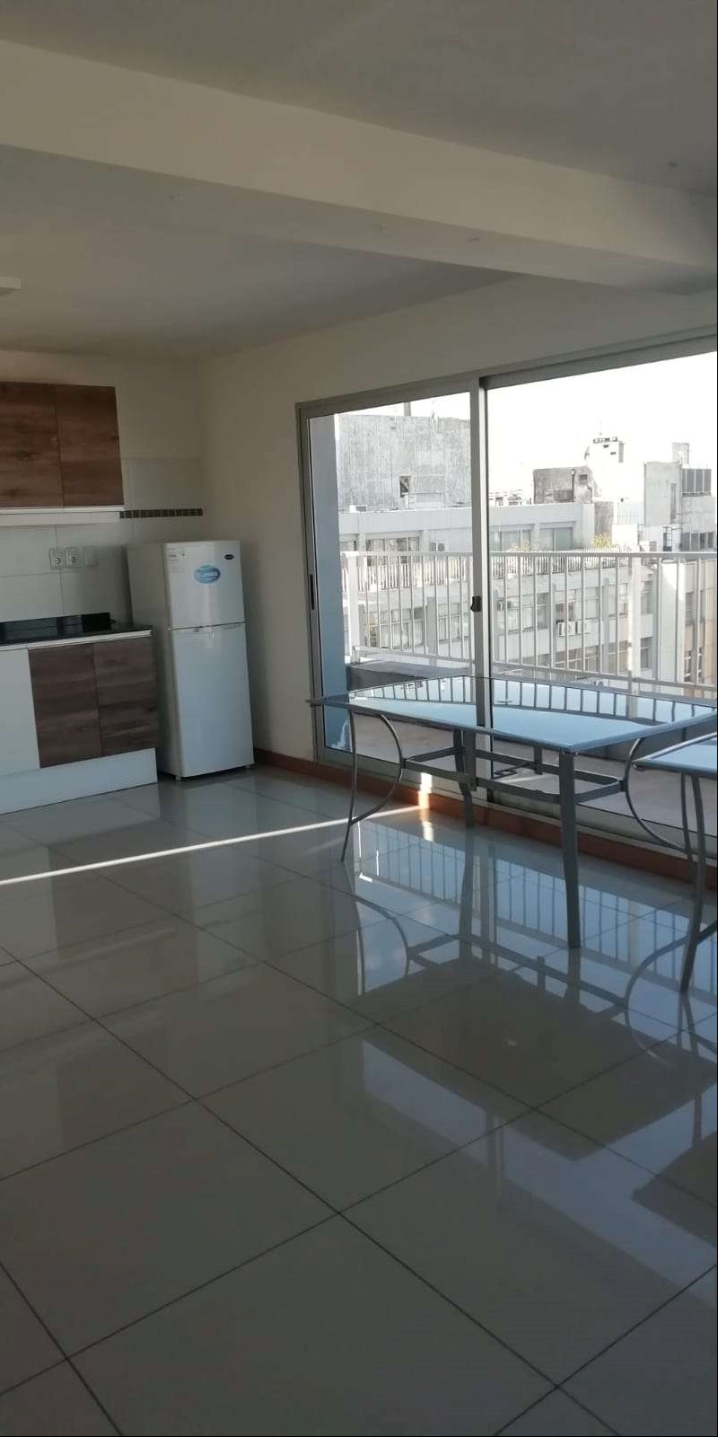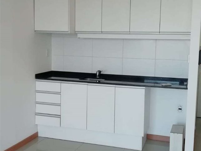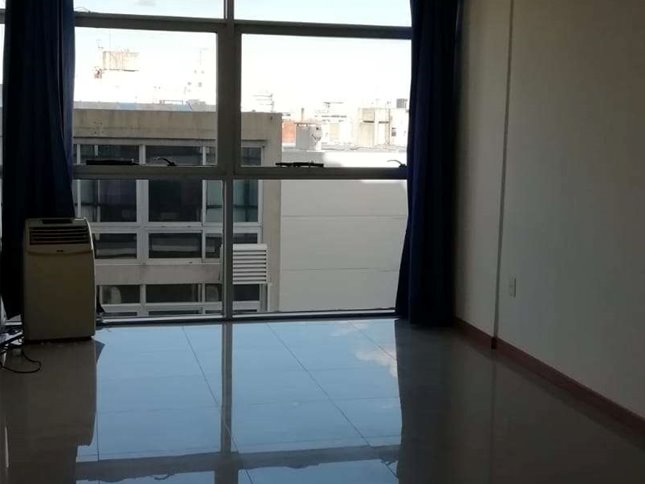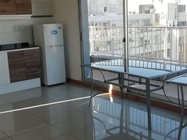 Monoambiente al frente en alquiler, con cocina integrada con placares aereos, y bajo mesada, baño completo y aire acondicionado.