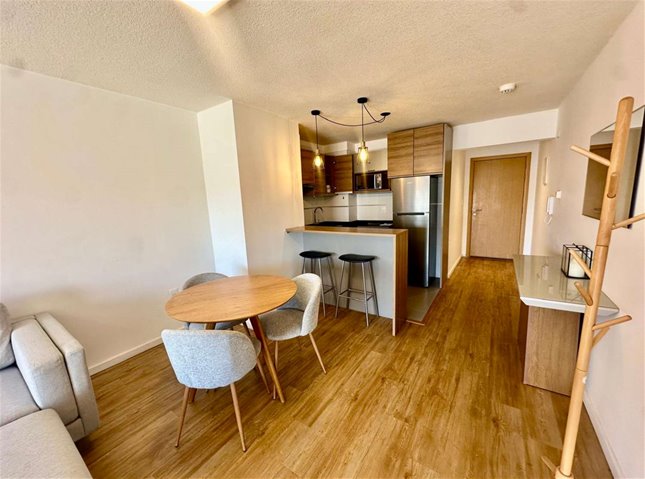 Cuenta con 1 dormitorio con placares, cortinas, espejos, cocina integrada al living comedor